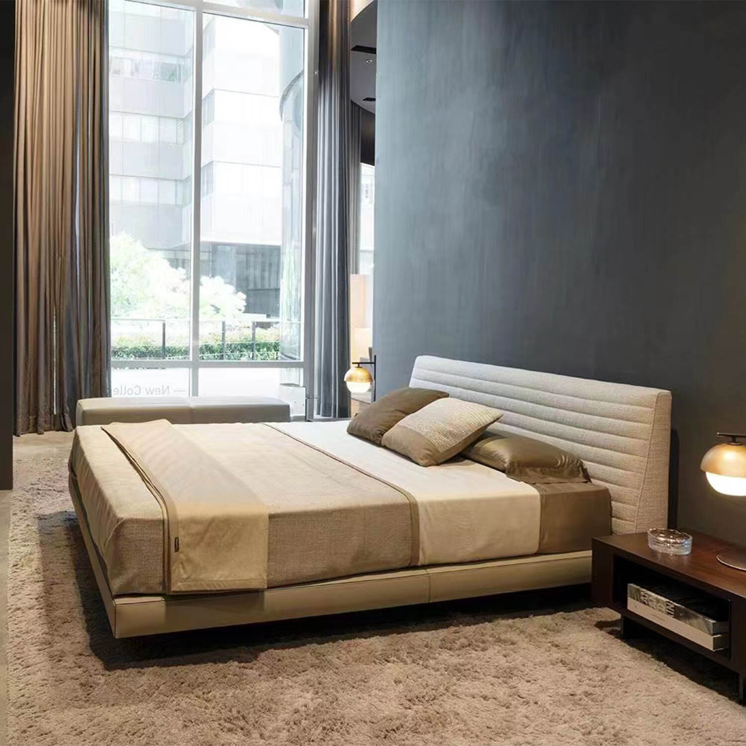 The A2521 bed brings together modern aesthetics and functional design. With a horizontal-striped headboard and contrasting deep brown frame, this bed reflects contemporary simplicity while offering a warm, relaxing atmosphere. Its quiet, stable structure supports restful sleep, and customizable options make it ideal for diverse interior design needs across residential and commercial spaces.