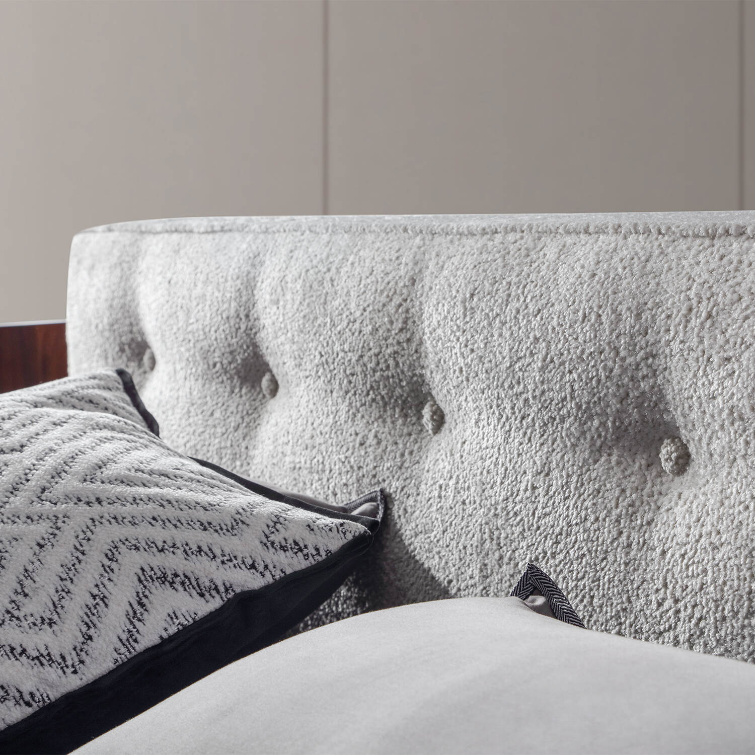 The A2535 bed blends elegant design with enhanced functionality. Featuring a soft white upholstered headboard with decorative button detailing and an integrated wooden nightstand, this model delivers both comfort and convenience. Its harmonious combination of textures and tones makes it a versatile centerpiece, easily pairing with various interior styles in both residential and hospitality settings.