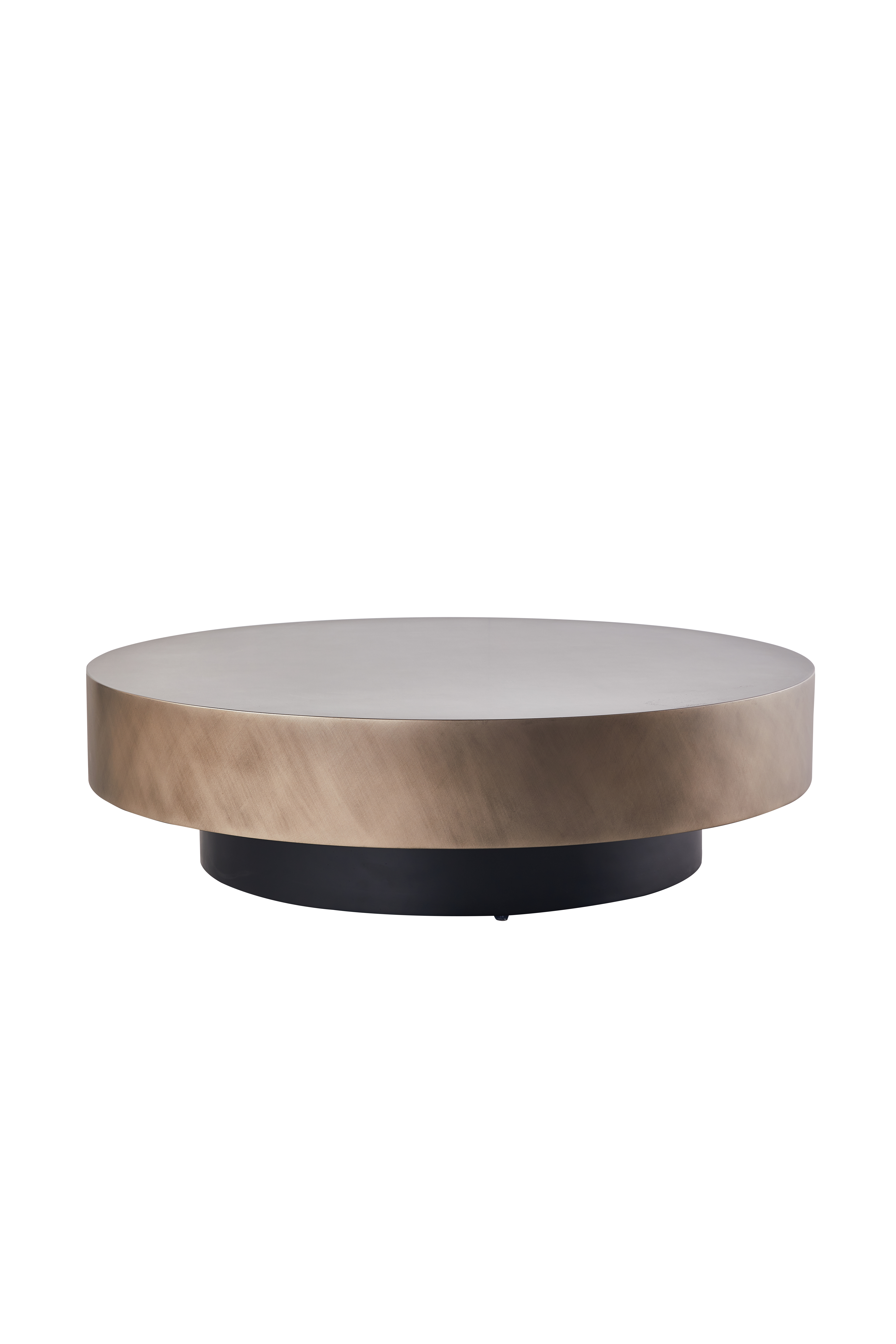 The matte black circular base adds grounding contrast to the light top. Its low-profile design maintains an open, airy feel while offering sturdy support and stability.