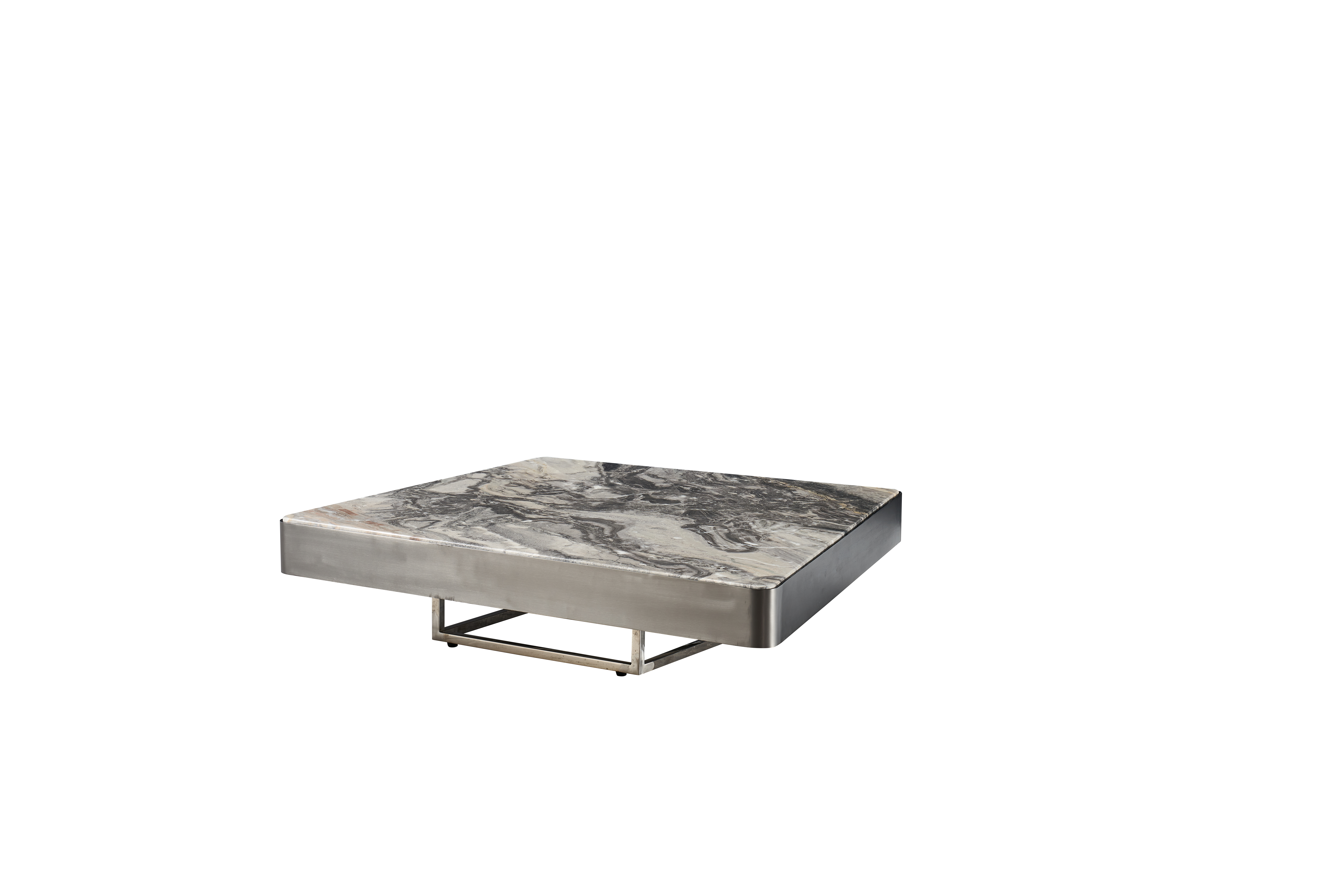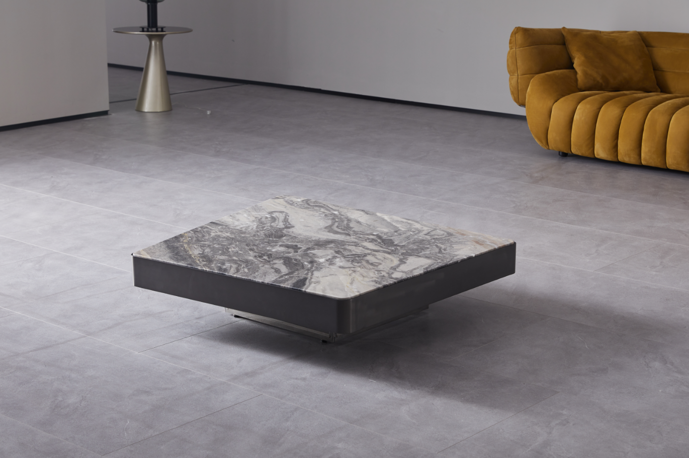 The BRC18009A square coffee table is a refined blend of luxury marble and black stainless steel, offering a bold yet elegant presence in contemporary living spaces. With its striking low-profile design and premium materials, this piece is ideal for upscale interiors that value both aesthetic appeal and structural durability.