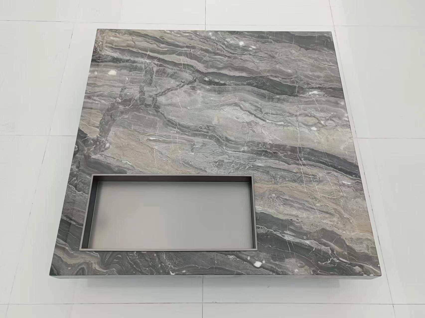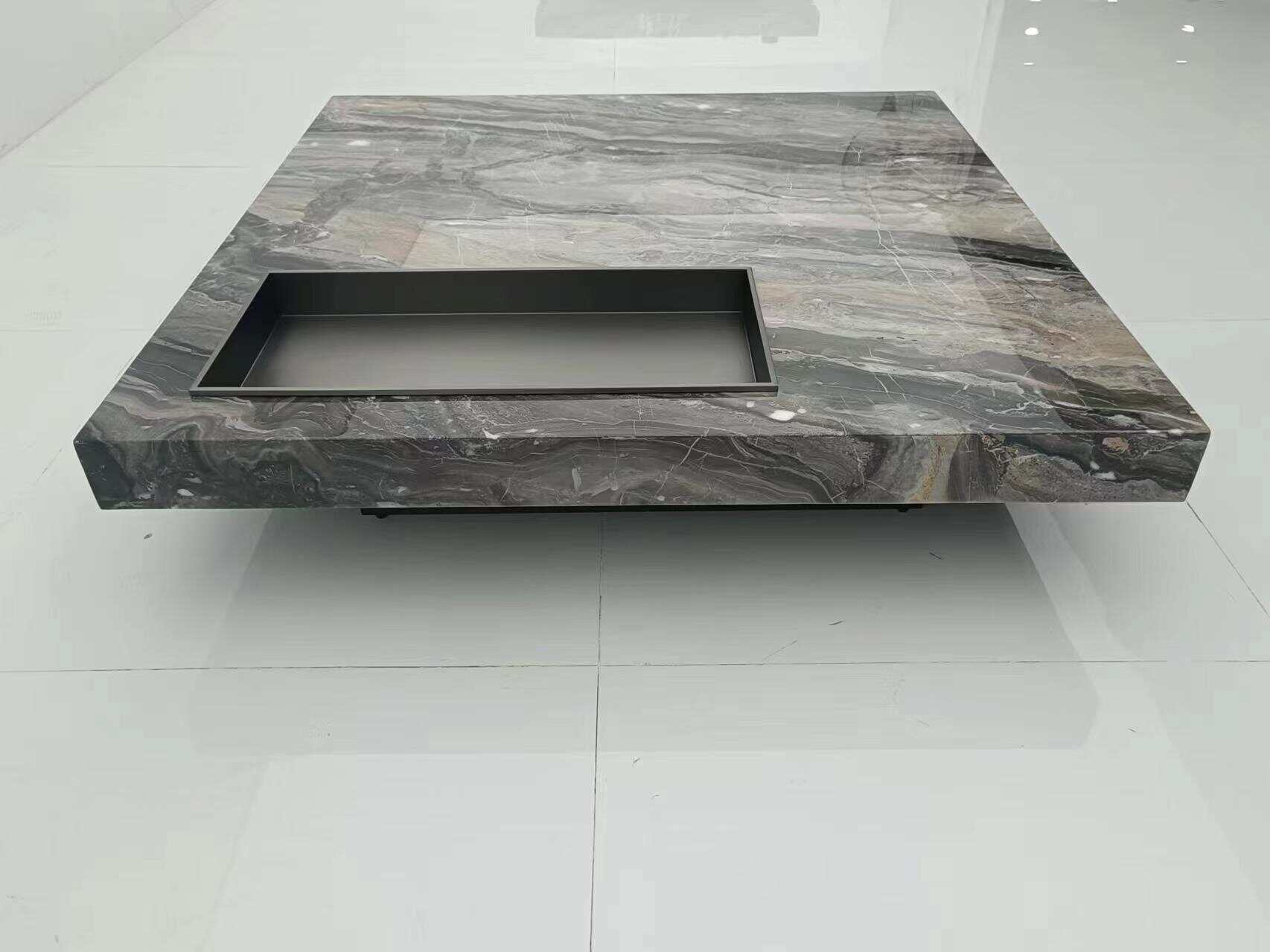 With its clean structure and elegant grey marble top, the BRC18010-3/BRC18010-7 square coffee table offers both refined aesthetics and practical storage. The sunken center is perfect for organizing small items, while the hidden legs and stainless steel support provide a sleek suspended look. The natural marble texture brings warmth and authenticity, fitting seamlessly into modern, minimalist living spaces or design-forward commercial settings.