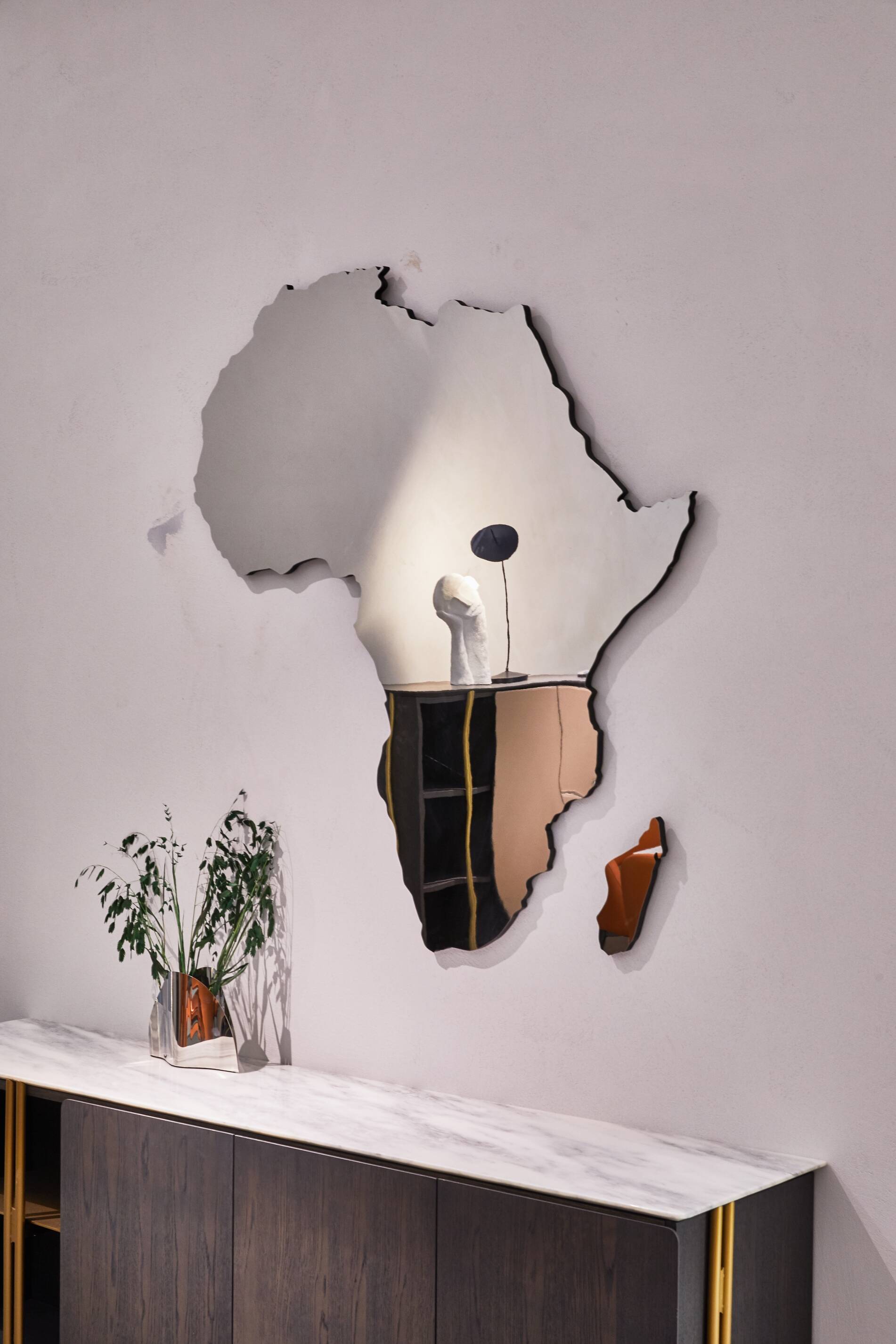 The geometric brass legs are anti-rust, anti-scratch, and heat-resistant, ensuring durability while contributing a modern luxurious touch. The open-frame design gives the piece a visually light and airy presence.
