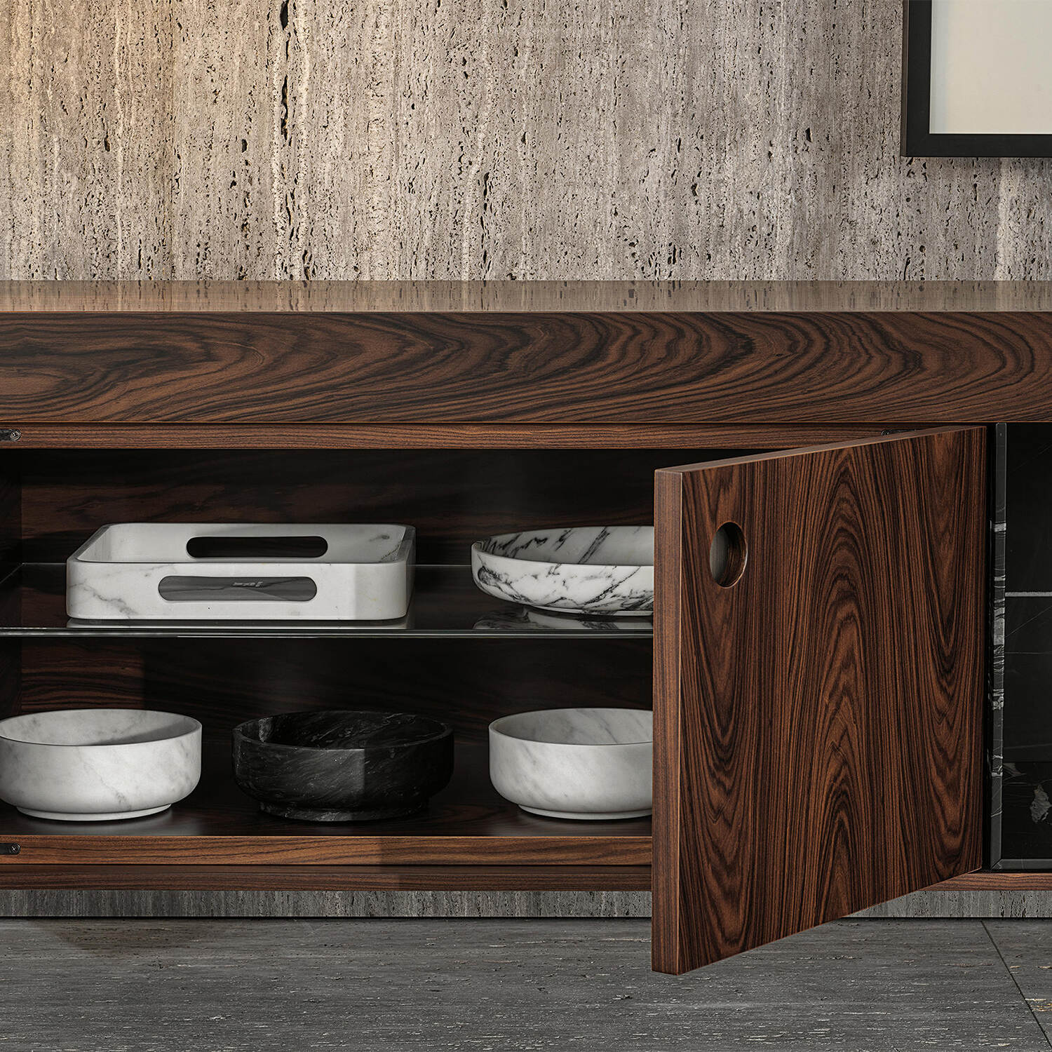 Left: Enclosed storage cabinet; Right: Open display shelf