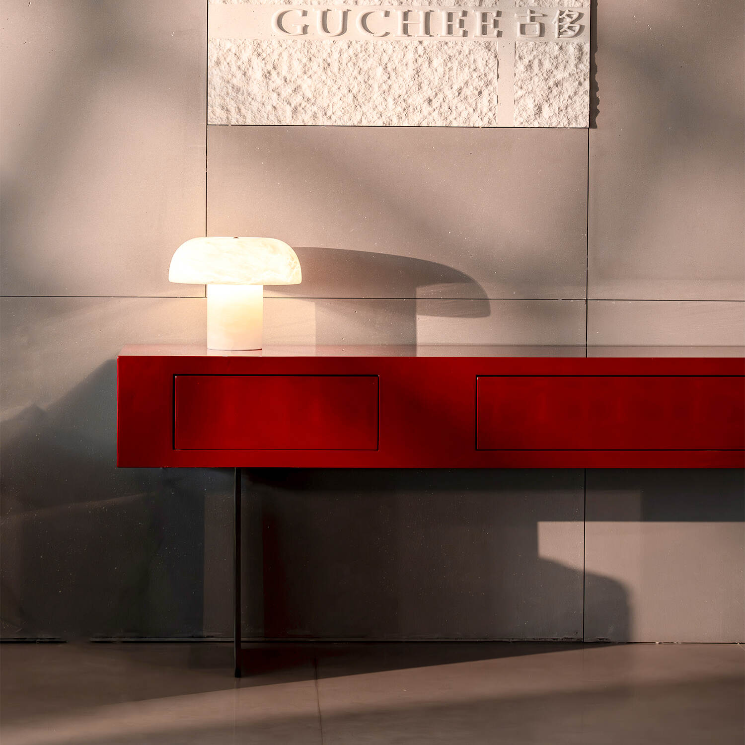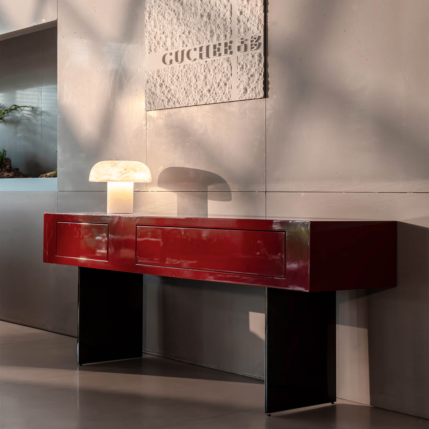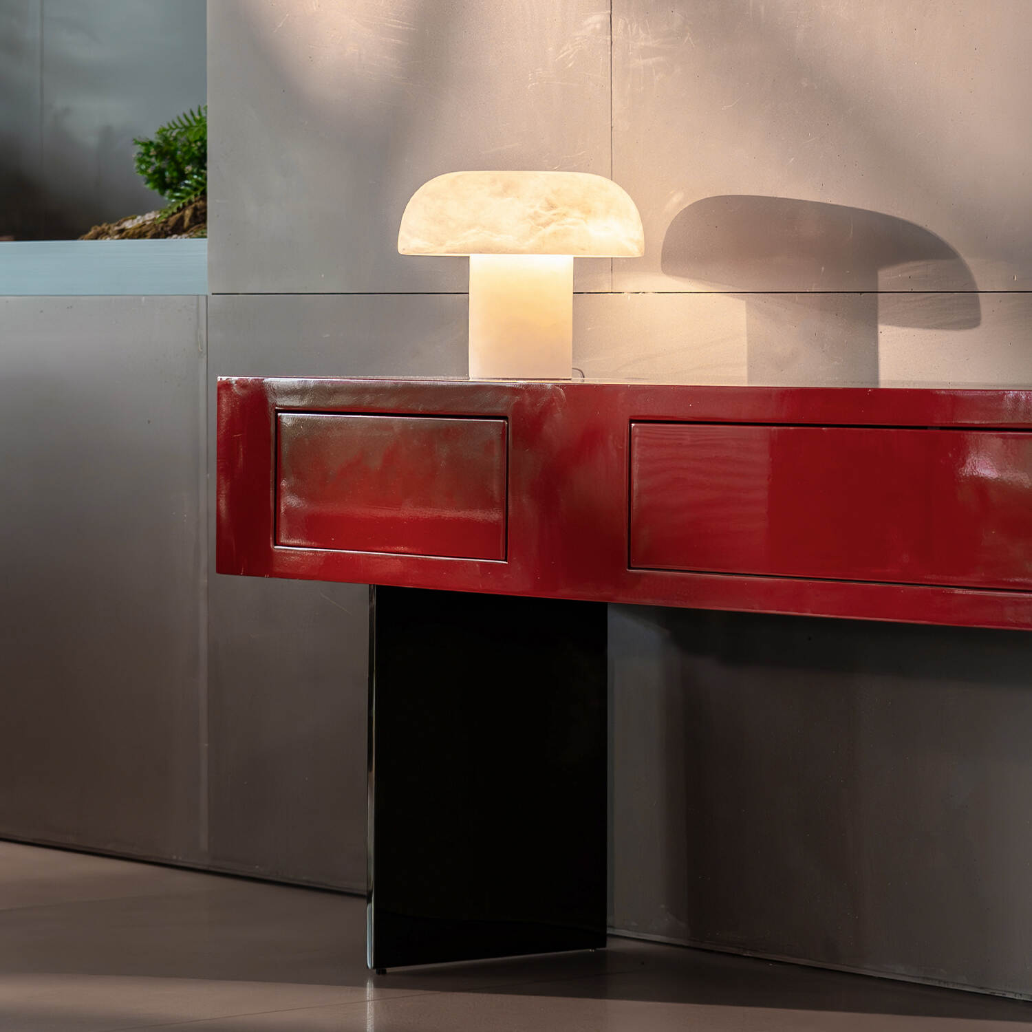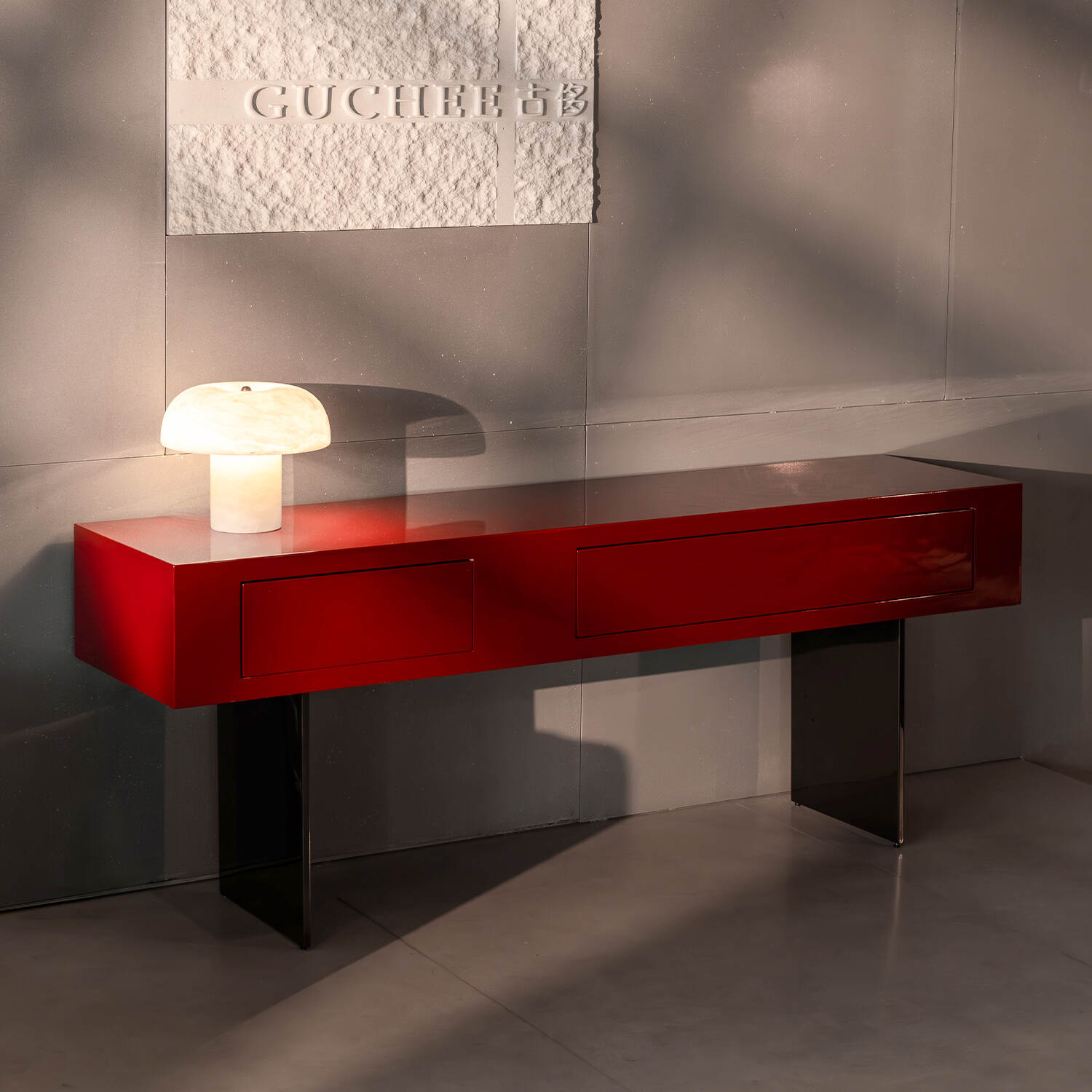 The tabletop is finished with a vibrant high-gloss red lacquer, offering a smooth and polished surface that enhances both aesthetics and practicality. Its bold color instantly revitalizes the atmosphere of any room, adding a sense of energy and sophistication.