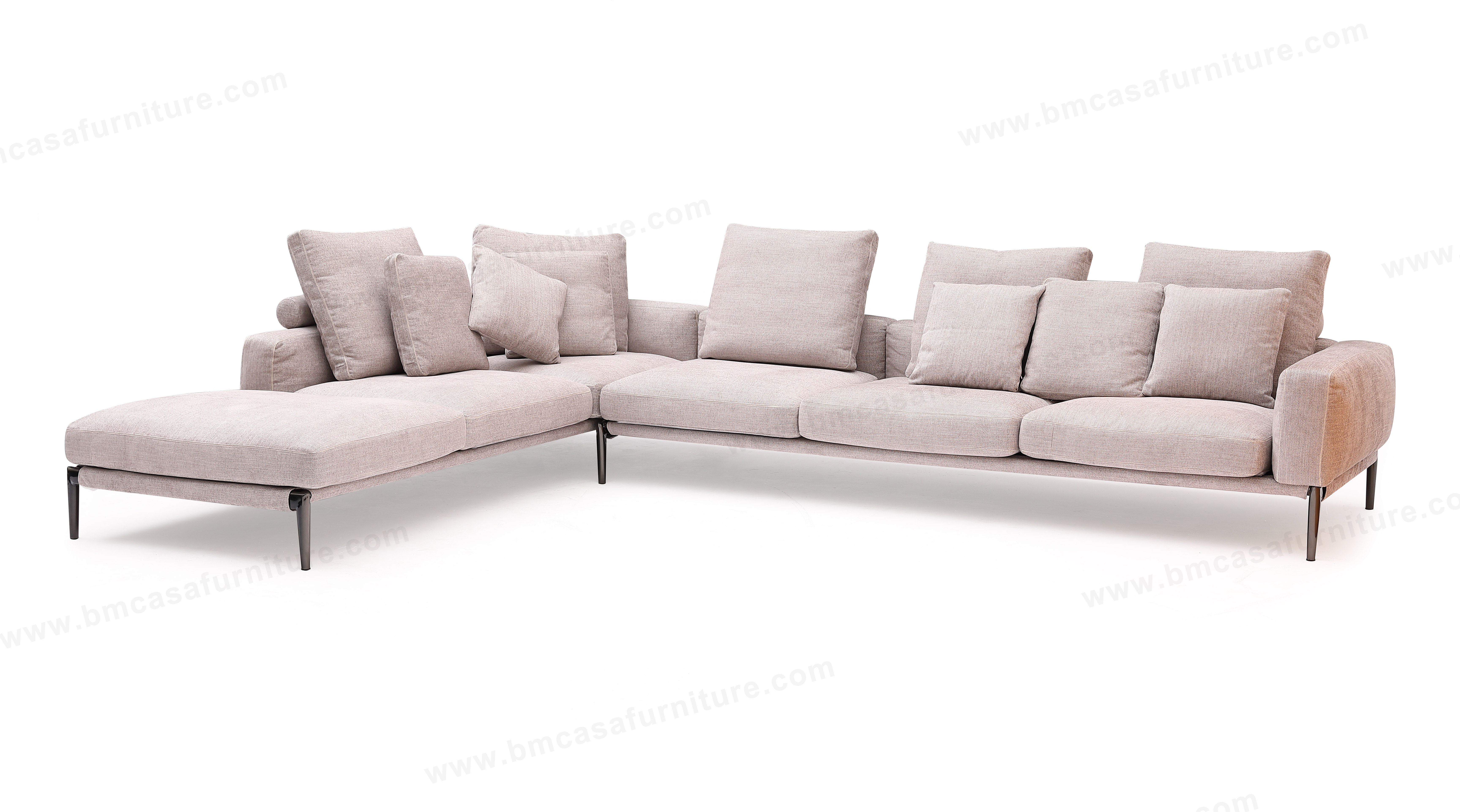 The F9556 modern living room sofa set blends functionality and sophistication for contemporary spaces. Featuring a mixed upholstery of soft fabric and sleek leather, this set enhances visual appeal while remaining easy to clean. Its modular build allows for flexible arrangement, making it suitable for various room layouts. Supported by a stainless steel frame and pine wood base, the sofa delivers both comfort and structural integrity for long-term use.