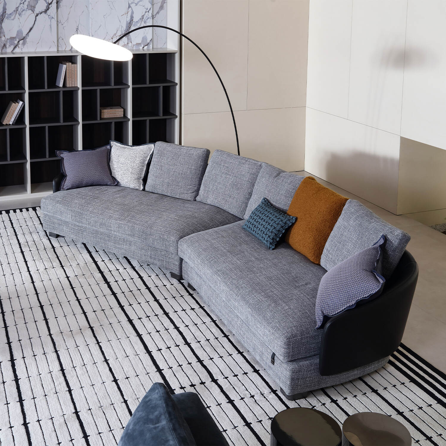 Designed for both comfort and style, the F9603 modern fabric sofa is a versatile seating solution for living spaces, lounges, and hospitality environments. Featuring a soft-touch gray fabric and black leather edging, it offers a refined aesthetic combined with long-lasting durability. With spacious seating, customizable options, and supportive cushioning, this sofa delivers a high-end experience that meets various residential and commercial needs.