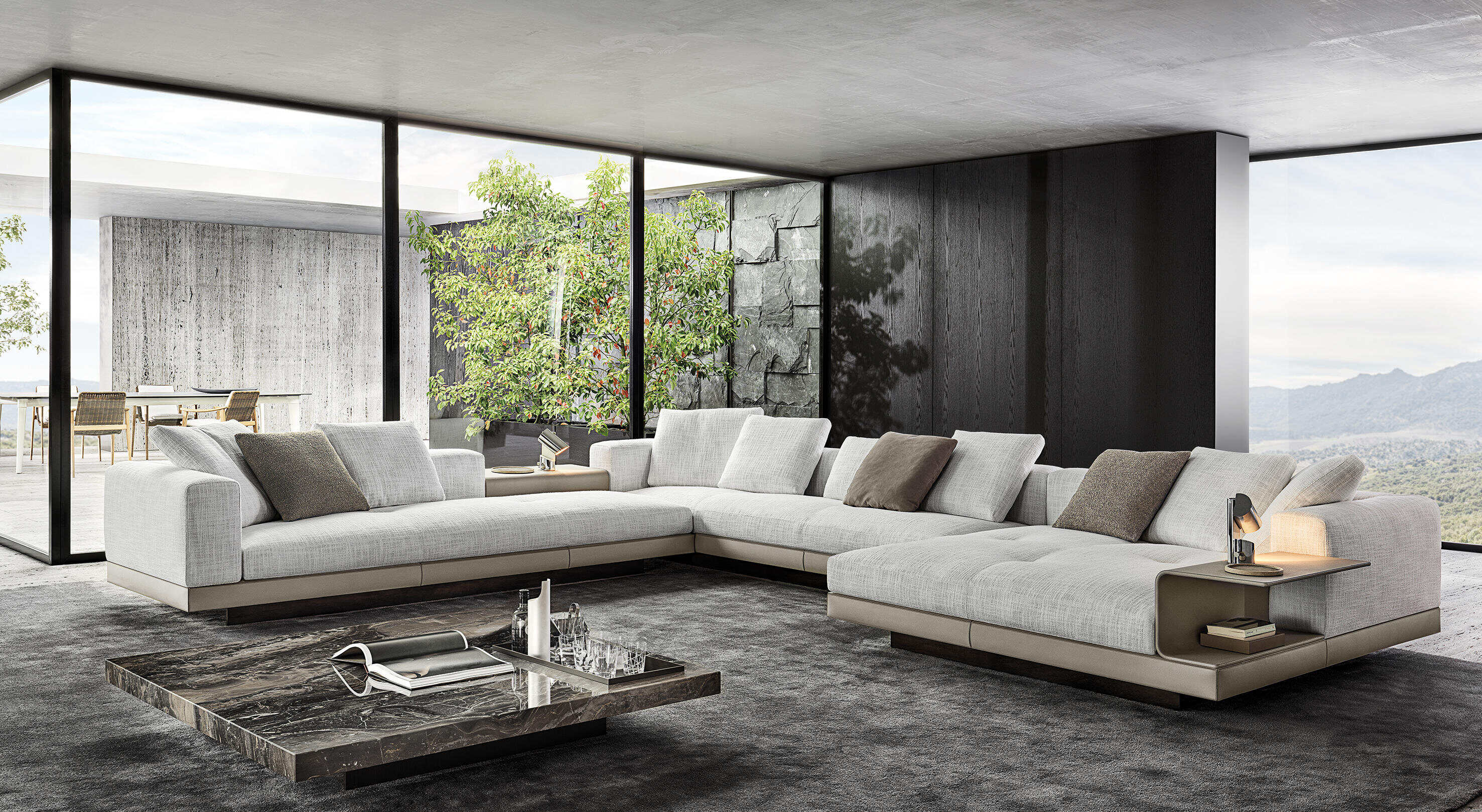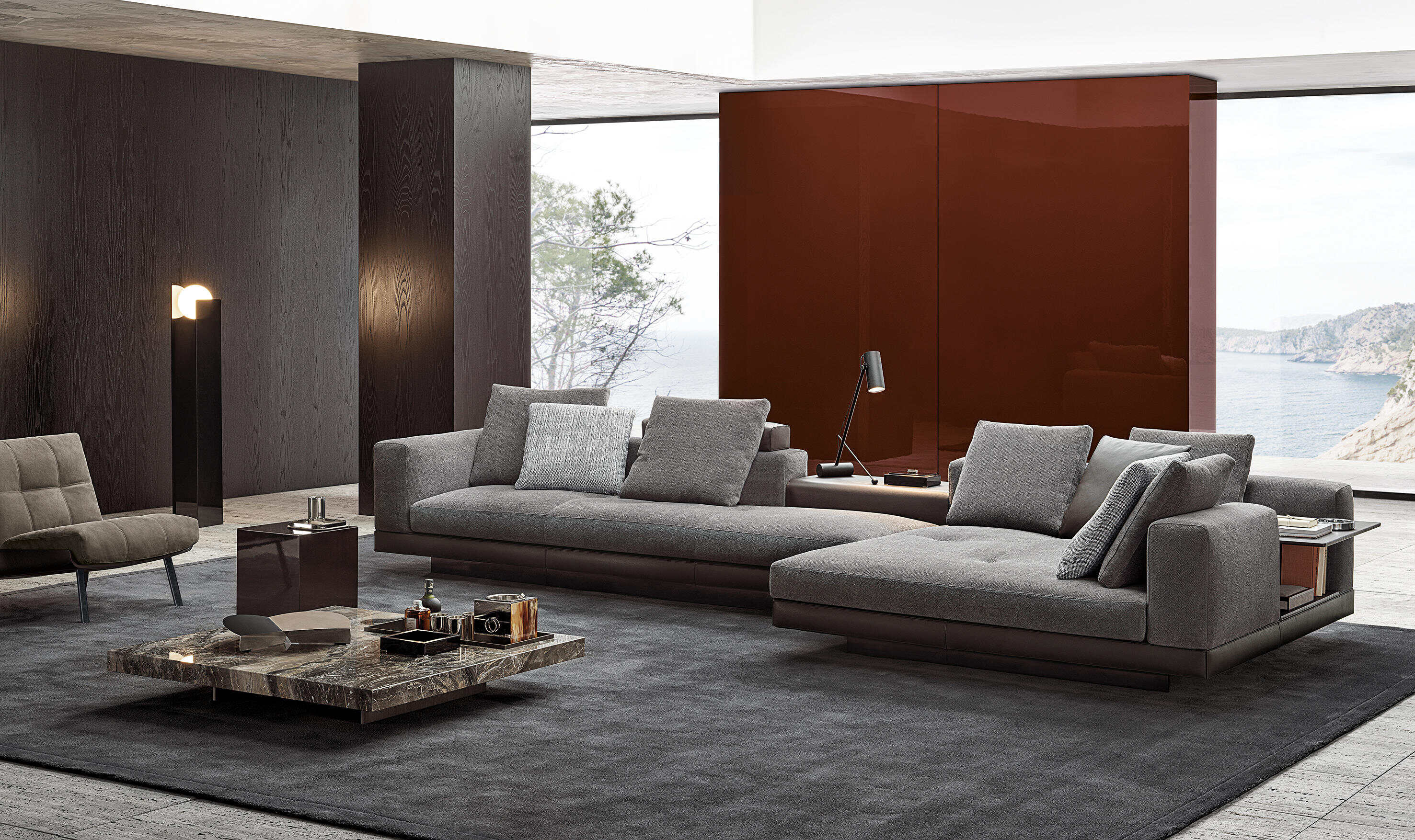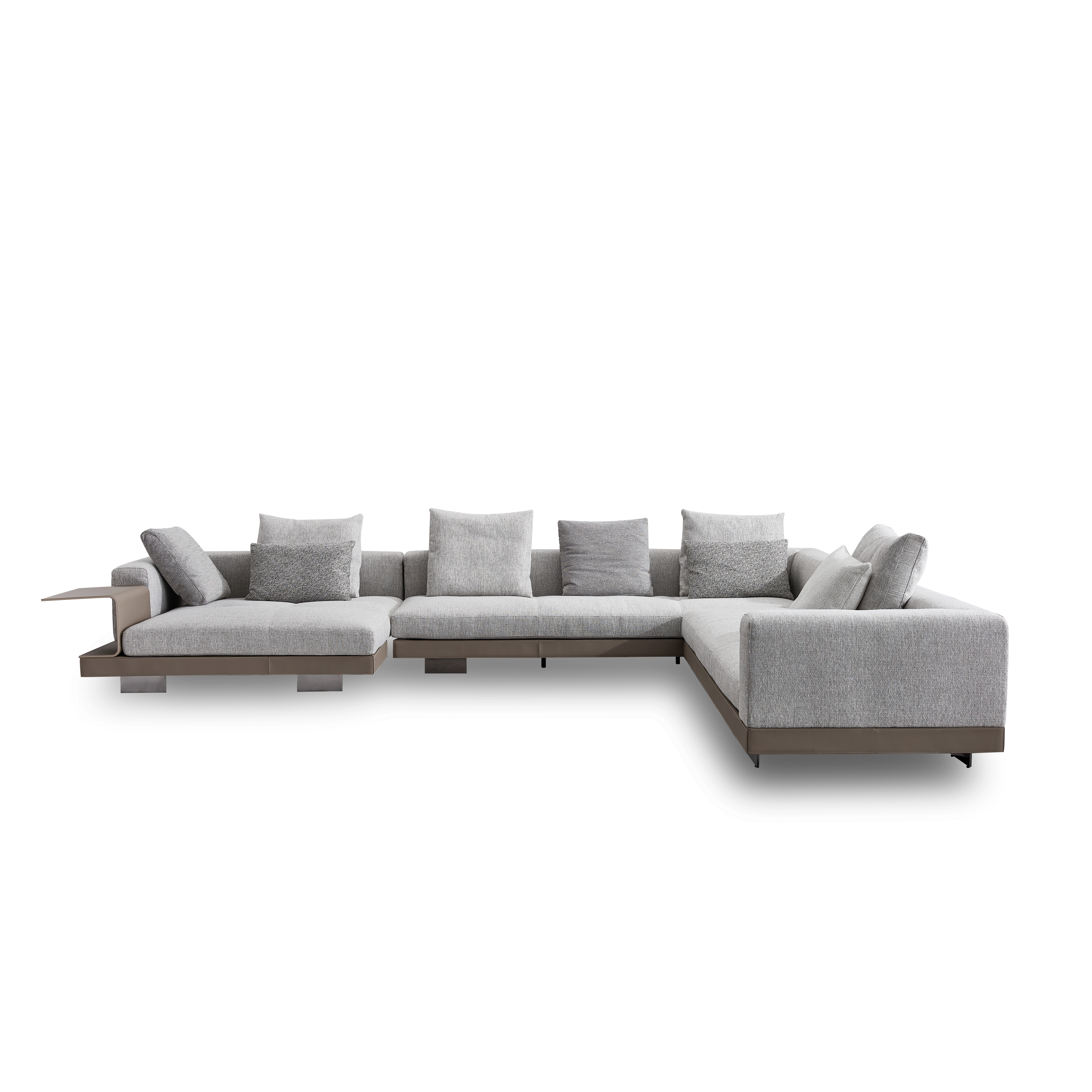The F9606 includes configurable units such as Left Arm Four, Right Chaise A, and Right Chaise B, allowing buyers to adapt the sofa to different room shapes and functional needs while maximizing floor space.