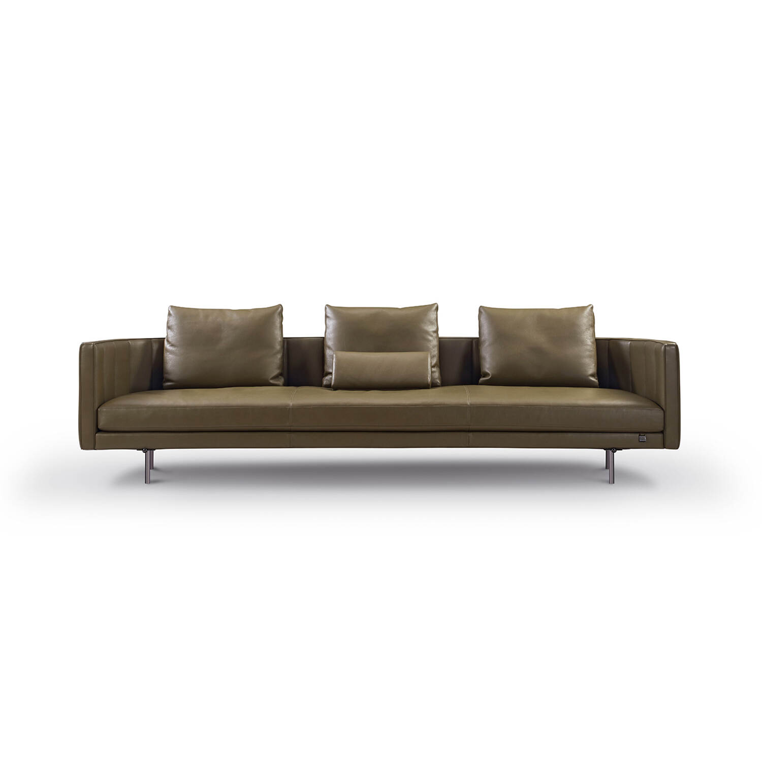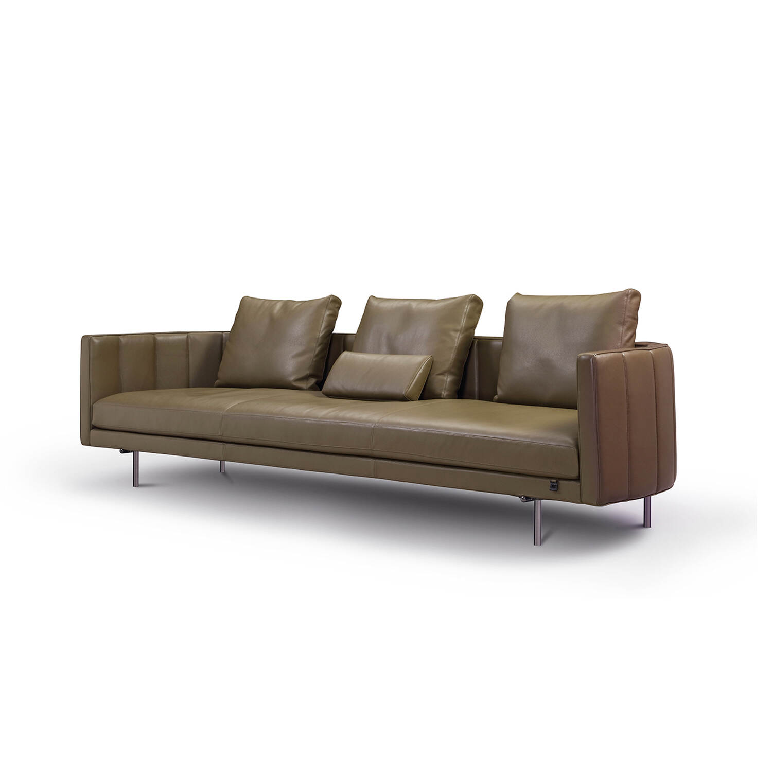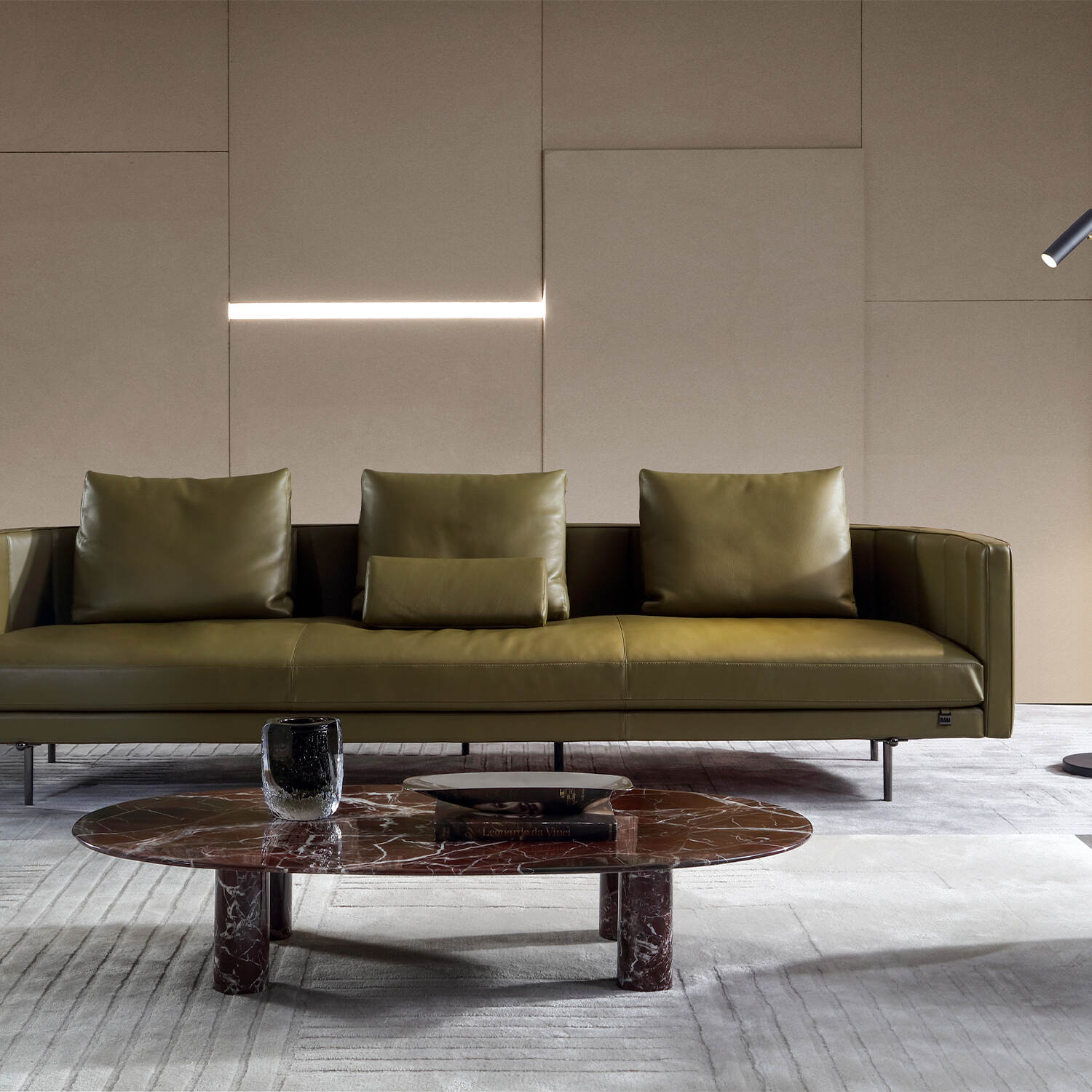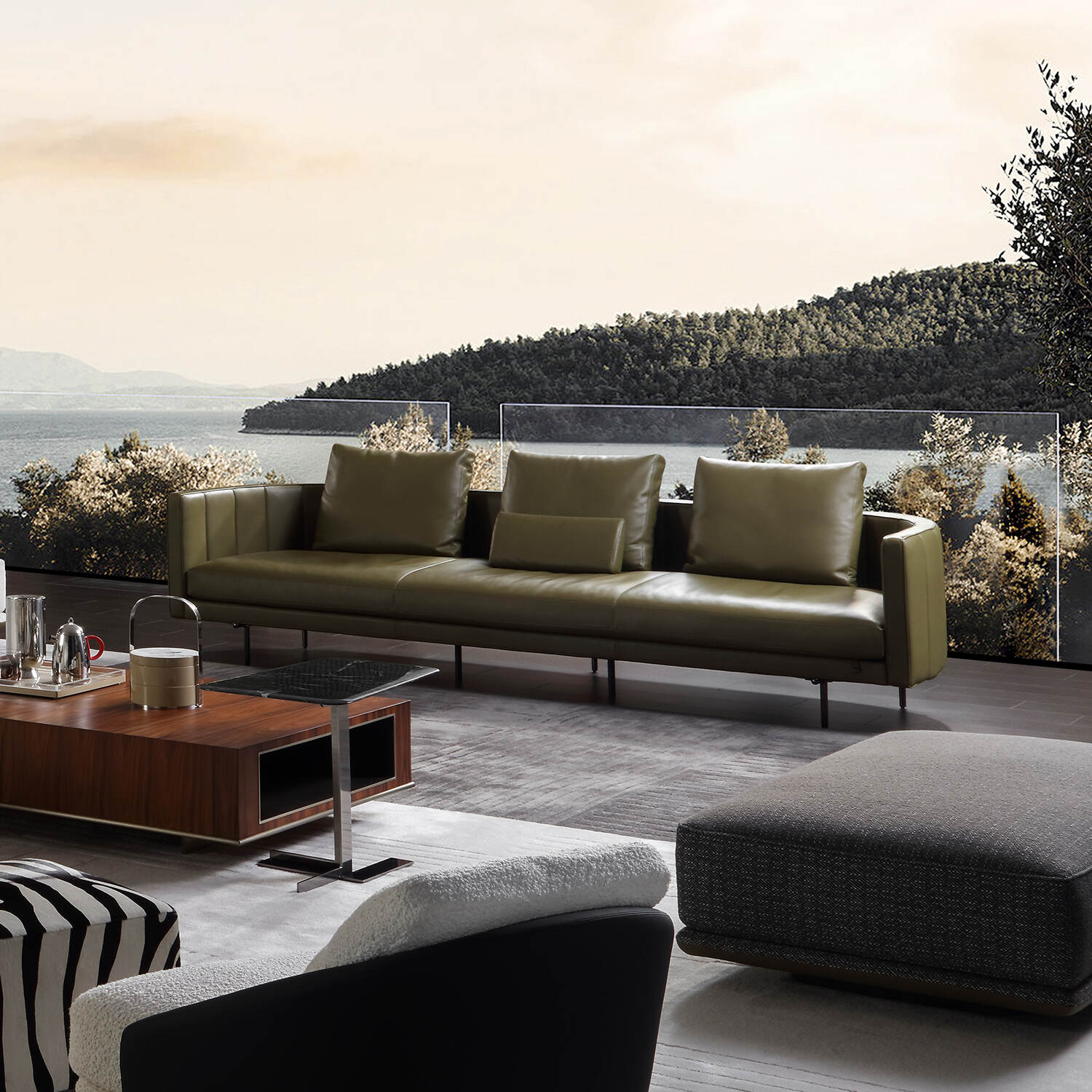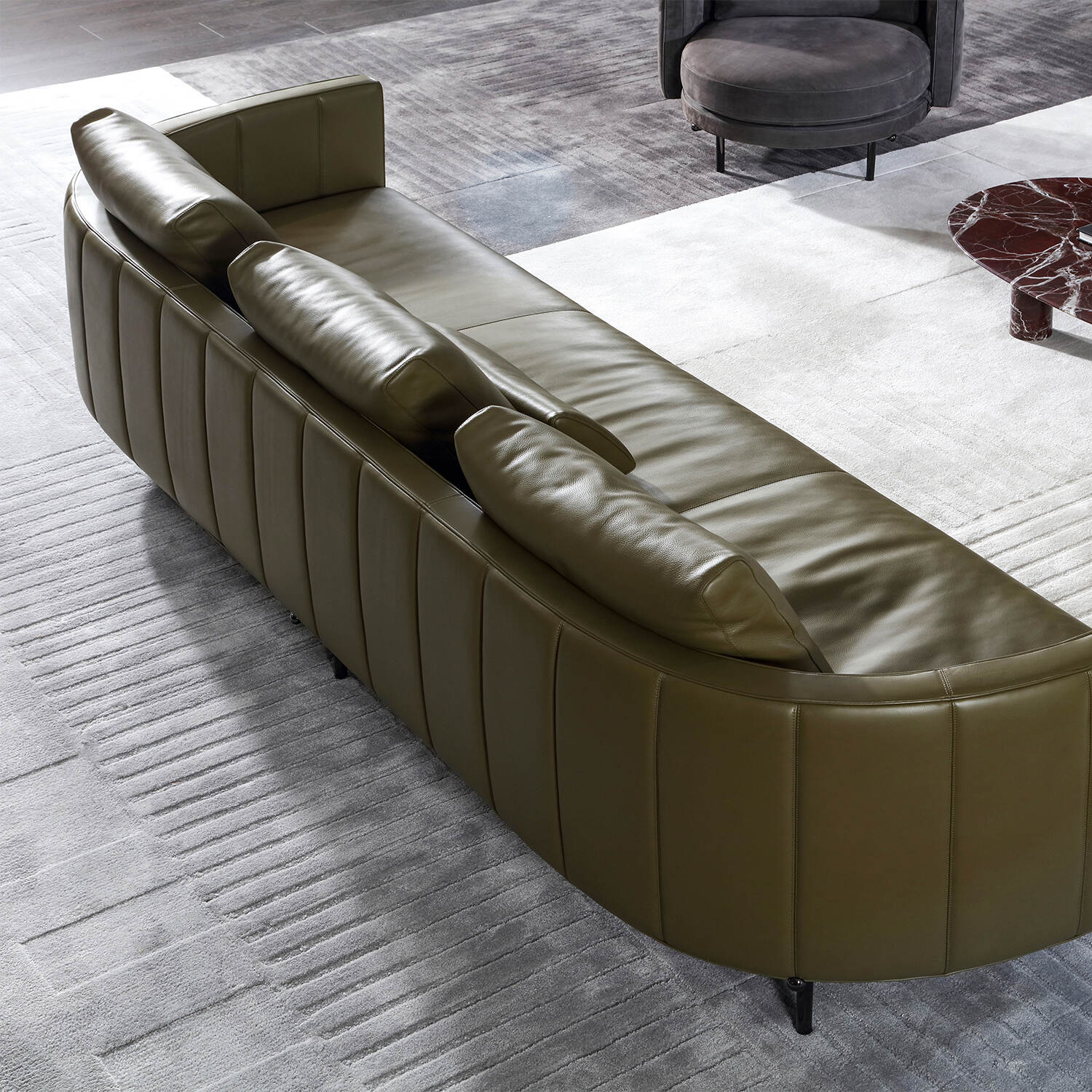 Crafted from high-quality olive green leather, the sofa offers a soft and delicate texture with a natural sheen. The material is durable and easy to maintain, making it suitable for long-term, high-traffic use in both residential and commercial environments.