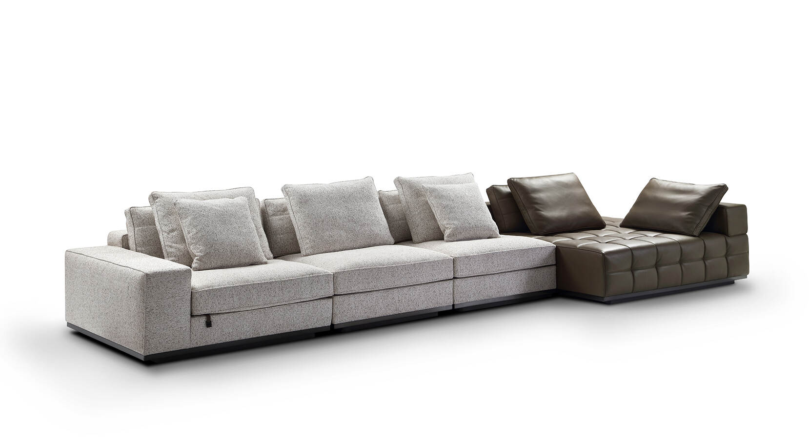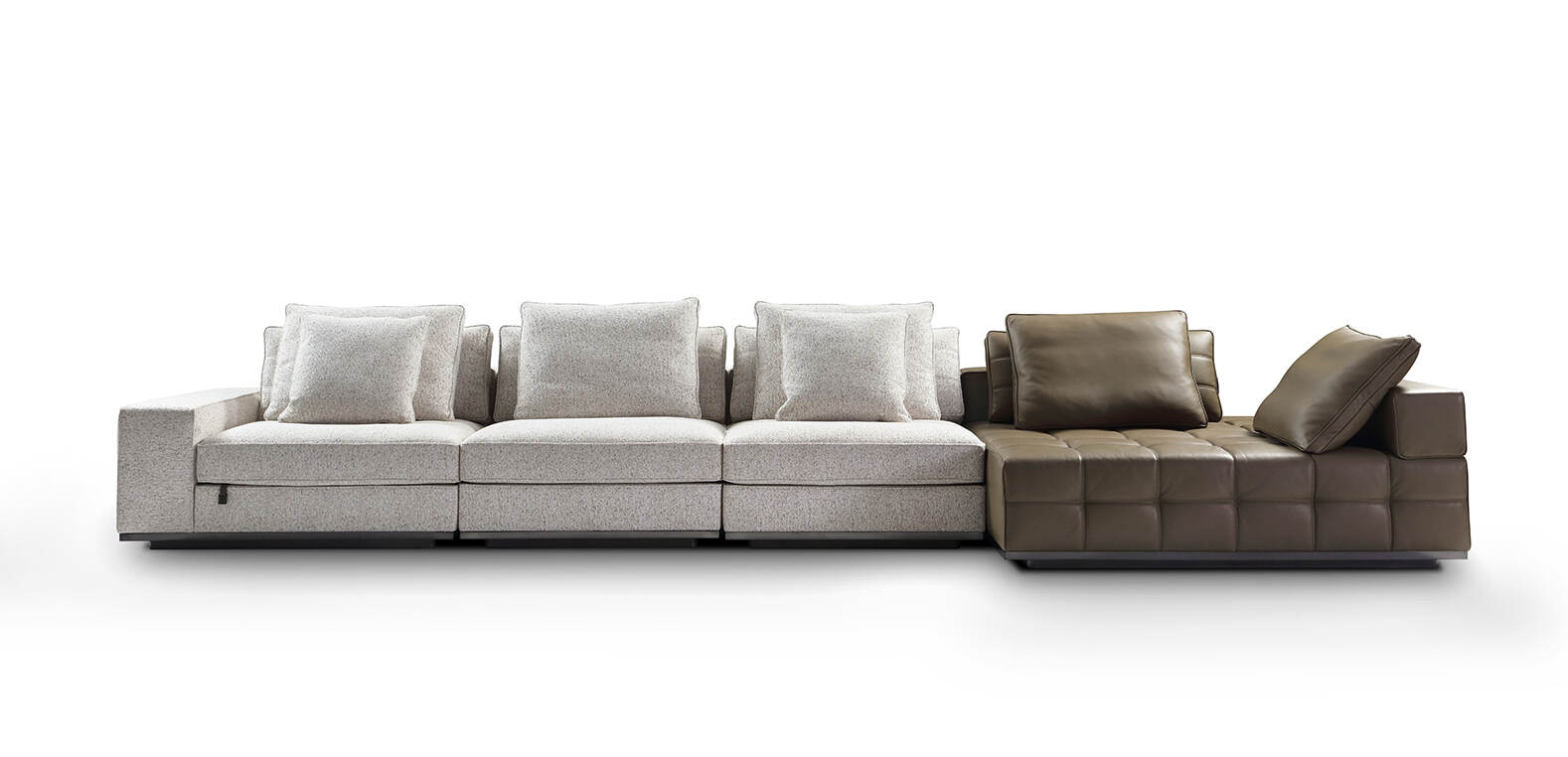 Designed with multiple modular pieces like left and right chaise lounges and ottomans, the F9696 allows flexible layout arrangements. This adaptability makes it suitable for various room sizes and design needs, from cozy lounges to spacious hotel lobbies.
