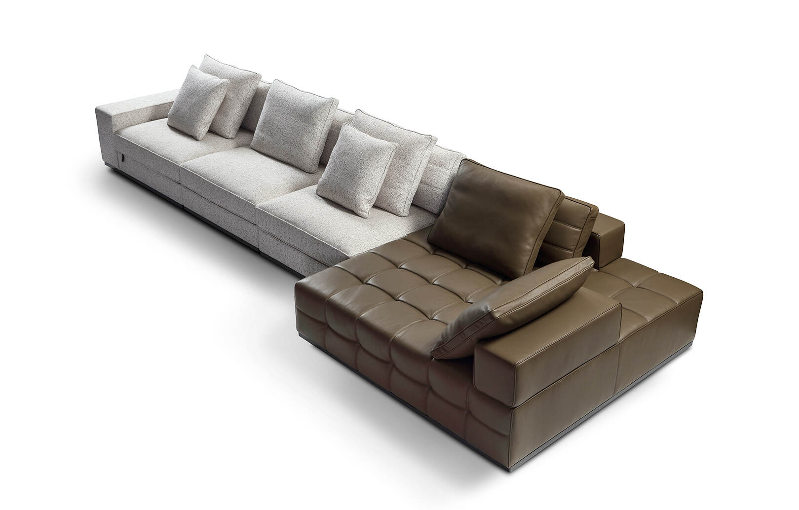 The blend of premium leather and soft-touch fabric offers a unique aesthetic while maintaining durability and ease of maintenance. This combination creates a tactile contrast that appeals to modern design sensibilities and provides a luxurious seating experience.