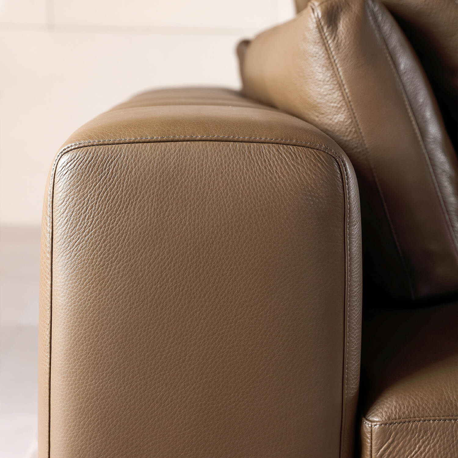 Upholstered in high-quality brown leather, this sofa resists wear and stains while offering a sleek, sophisticated appearance that remains elegant over time with minimal maintenance.