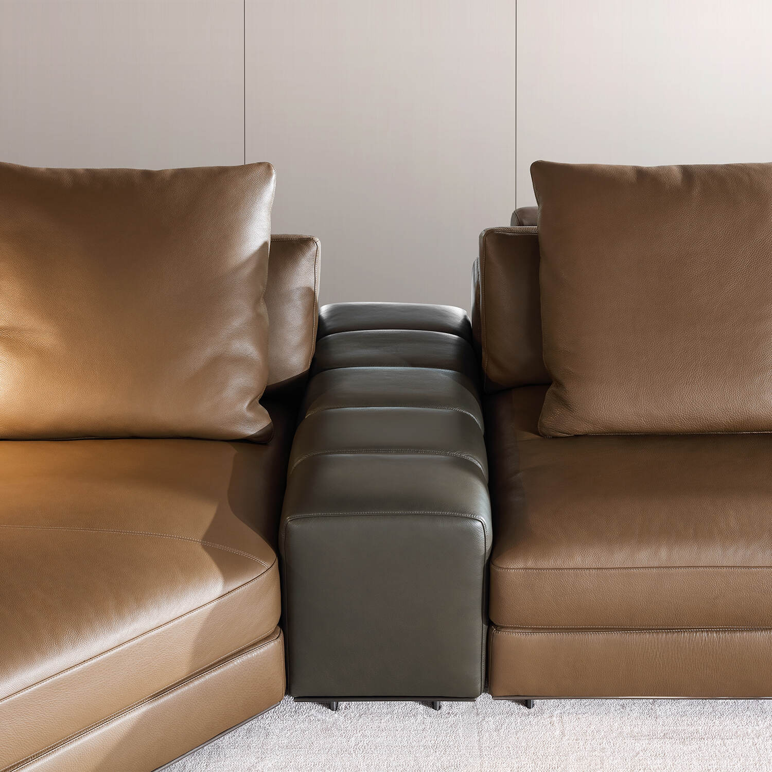 The F9708 modular sofa brings together minimalist aesthetics and functional comfort, making it a refined addition to modern interiors. Crafted from premium brown leather, this sofa offers durability and easy maintenance. Its ergonomic design ensures maximum comfort, while the modular configuration allows for flexible arrangement to suit various living spaces. Ideal for both residential and commercial environments, this sofa adapts to your spatial needs with style.