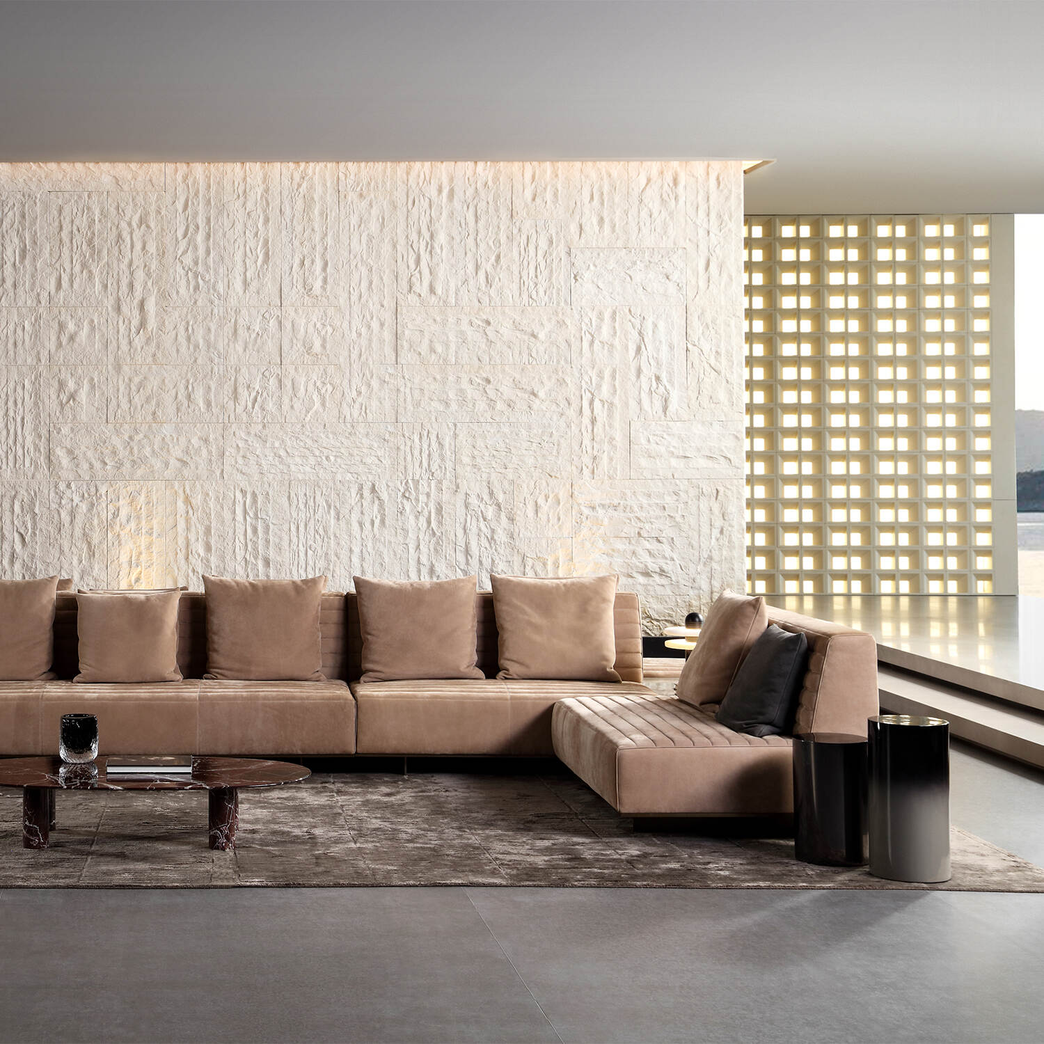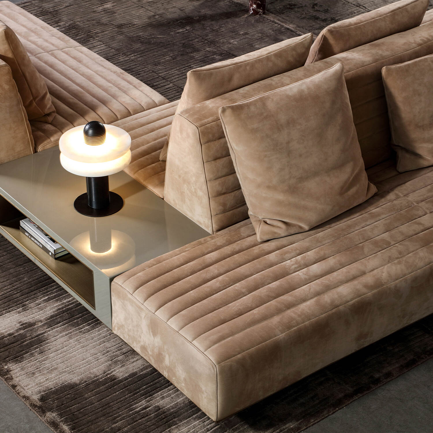 The L-shaped configuration offers flexible seating arrangements without occupying excessive space. Ideal for modern homes or open-plan spaces, it creates visual zones and supports versatile use—from lounging to entertaining.