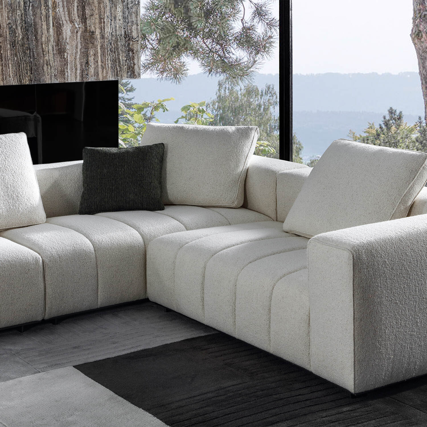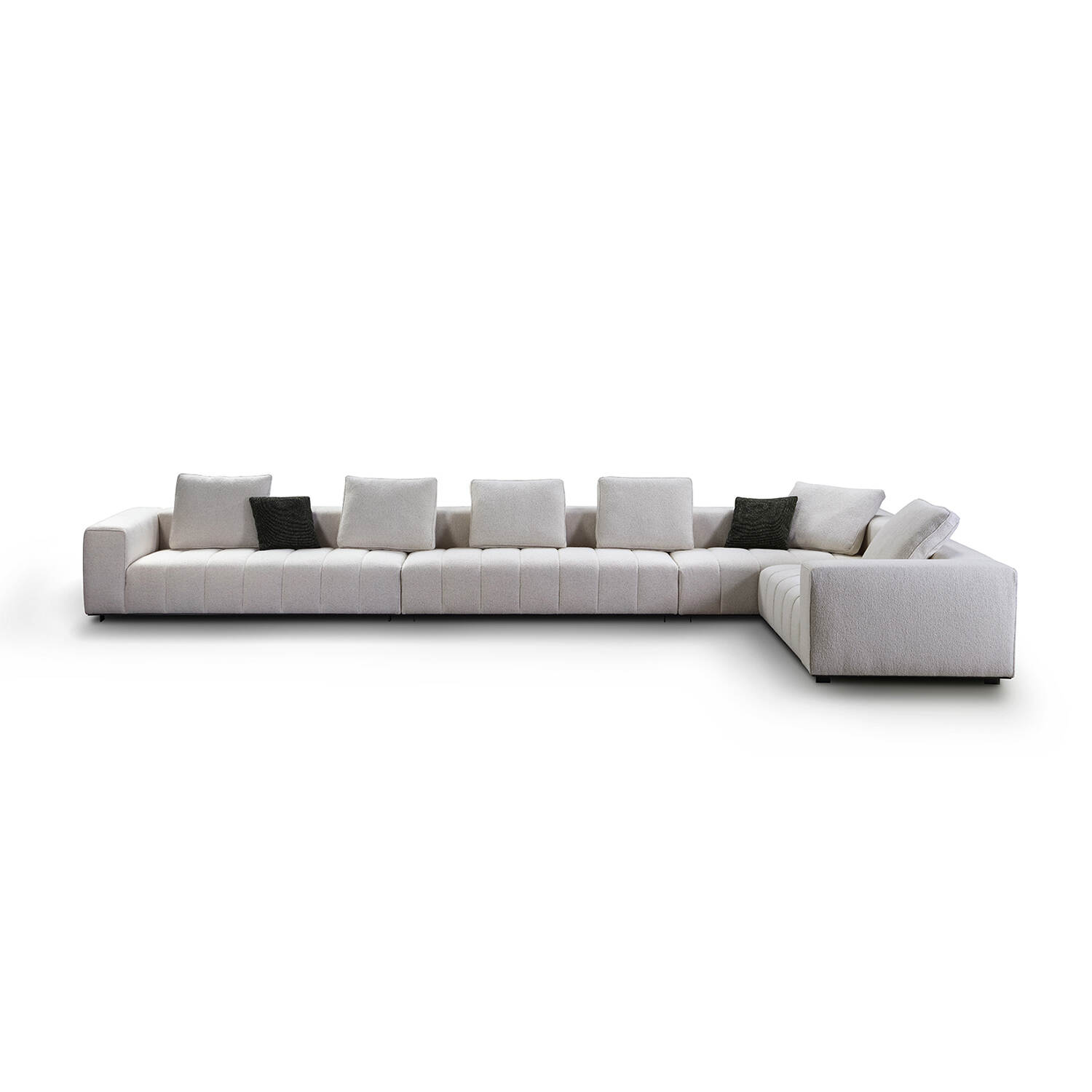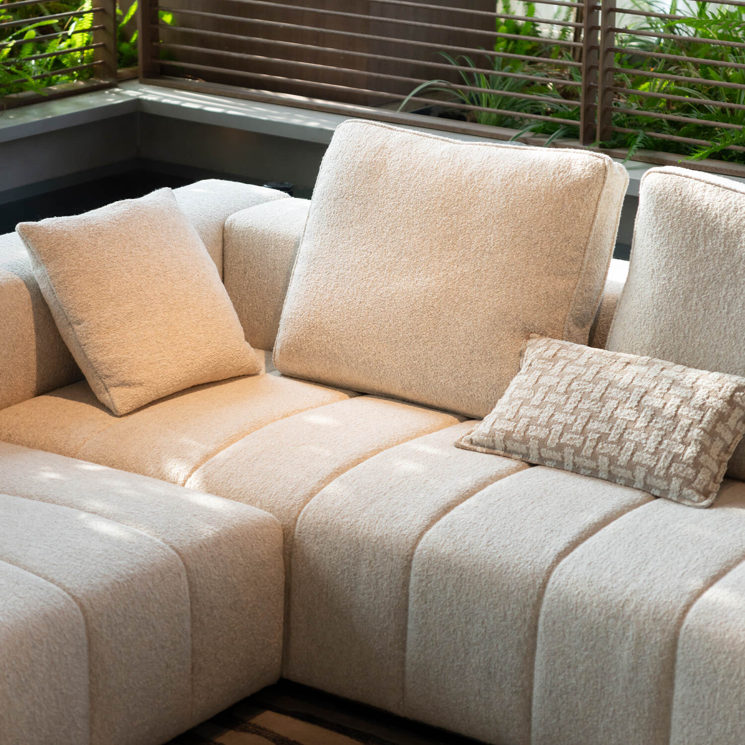 This sofa’s L-shaped design efficiently utilizes corner space while providing ample seating. It’s perfect for small or open-plan living areas, helping to define zones without adding bulk.