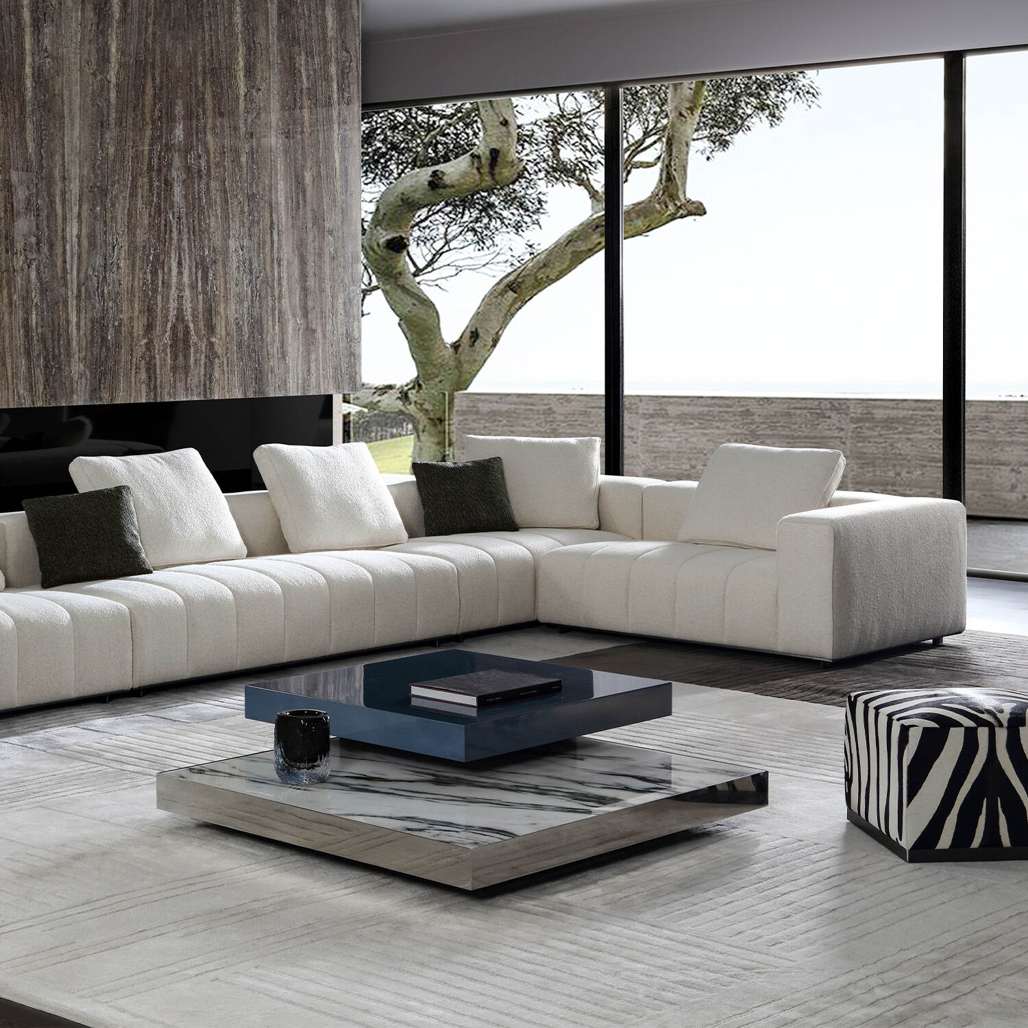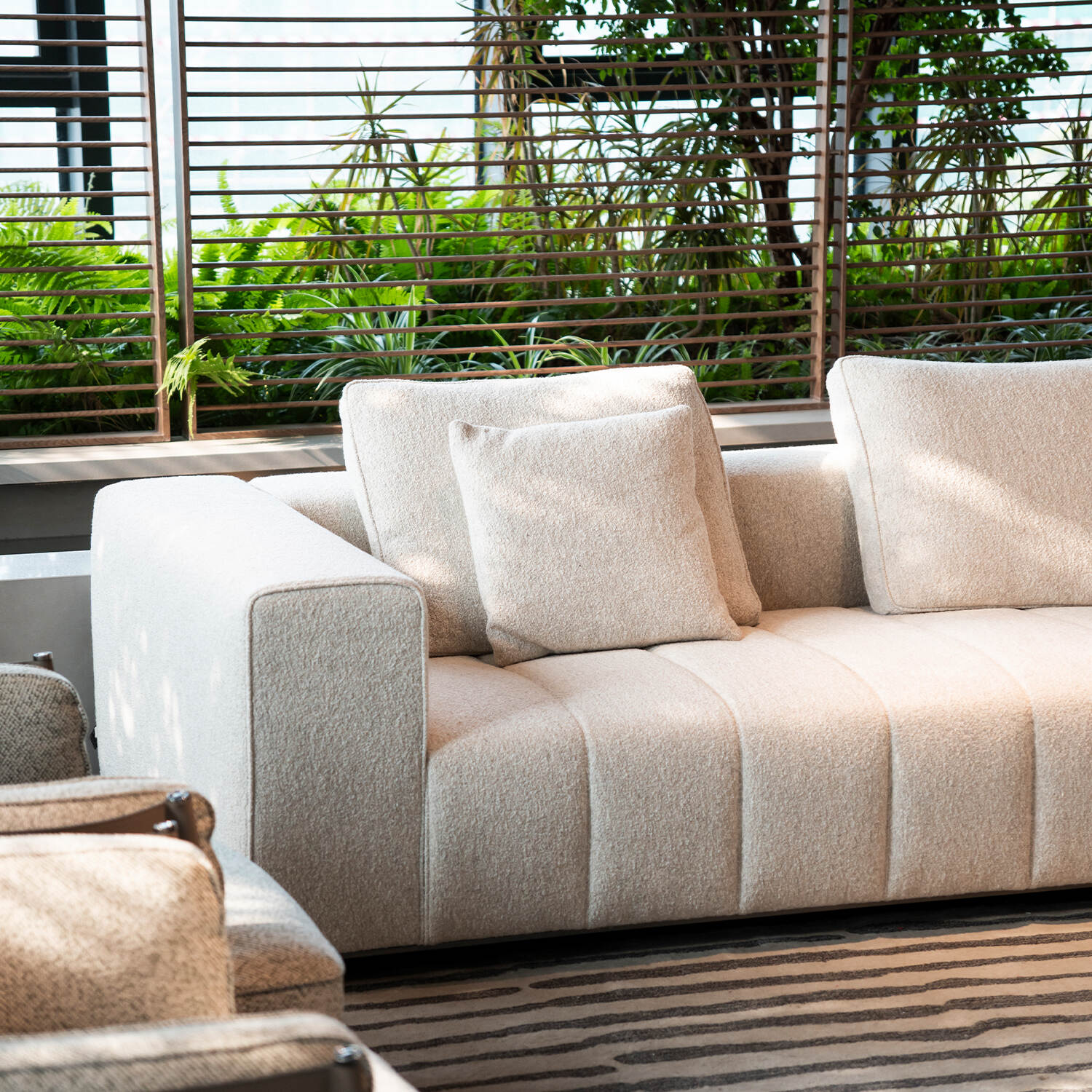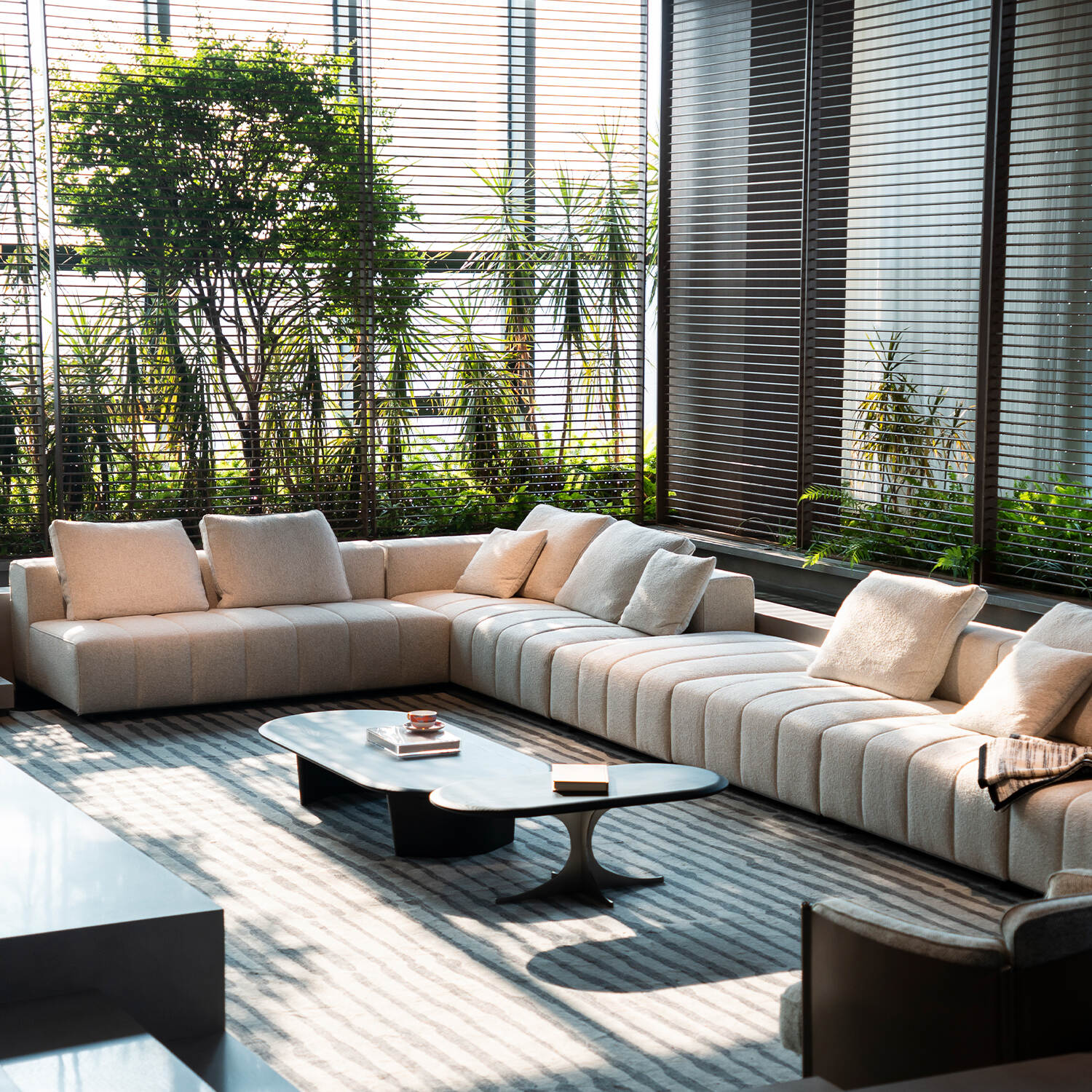 This sofa’s L-shaped design efficiently utilizes corner space while providing ample seating. It’s perfect for small or open-plan living areas, helping to define zones without adding bulk.
