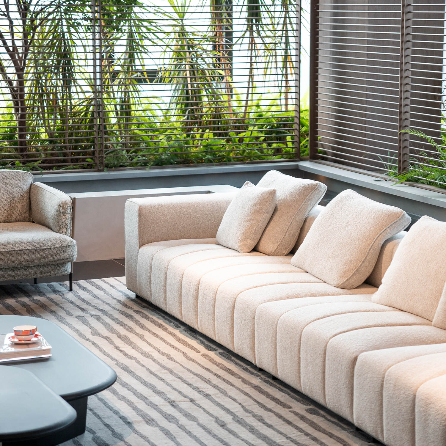 Designed with flexibility in mind, this sofa can be customized in color, size, and logo for residential projects, hotels, or commercial spaces. OEM and ODM services ensure tailored solutions for bulk buyers.