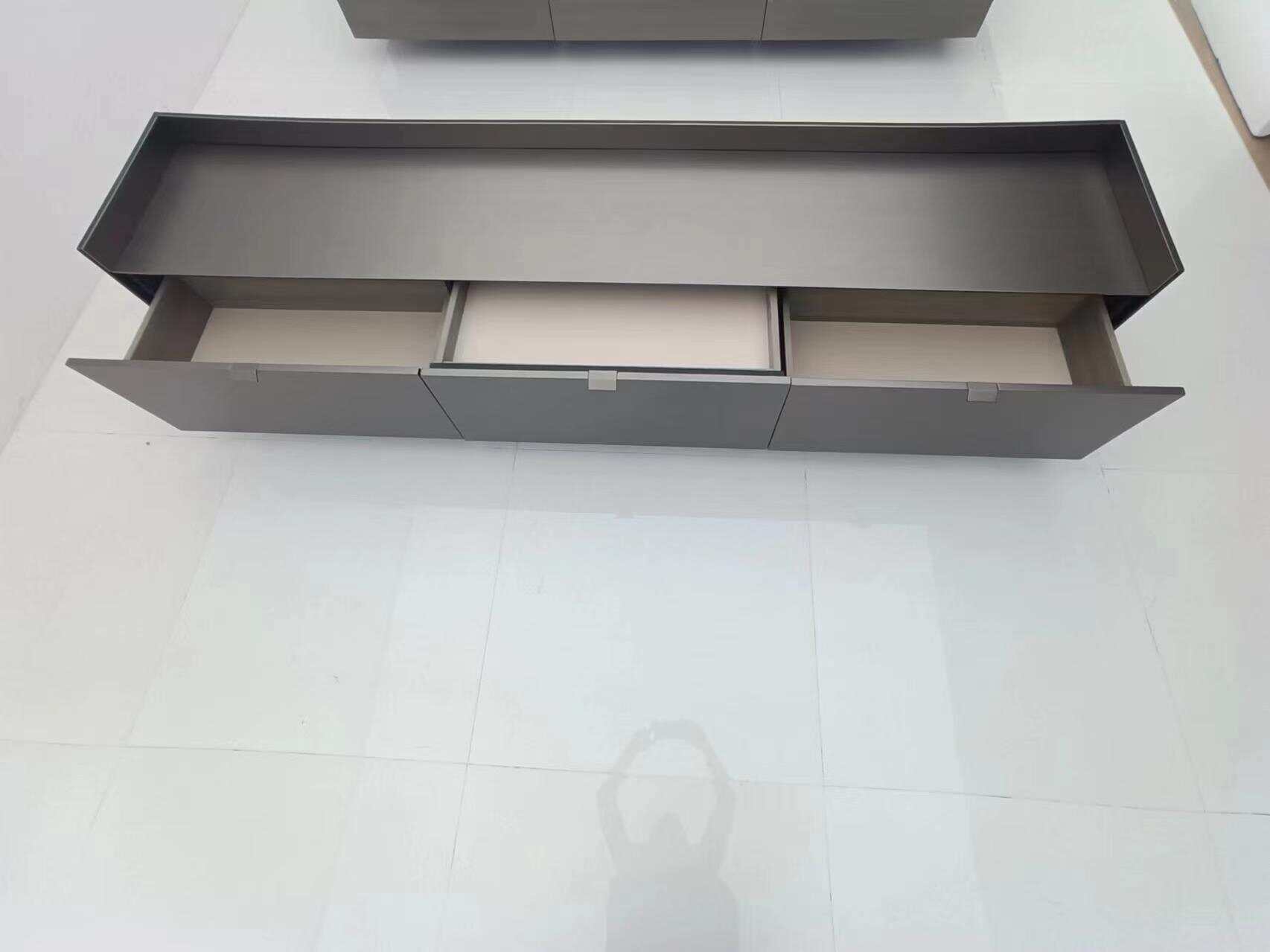 The BRG2205 TV stand blends contemporary design with smart functionality, featuring a sleek dark grey finish and high-quality materials. Designed with ample storage, this piece supports clutter-free organization while adding a touch of sophistication to modern living rooms. The smooth surface, rounded edges, and elevated legs make it both practical and aesthetically refined for high-end interiors.